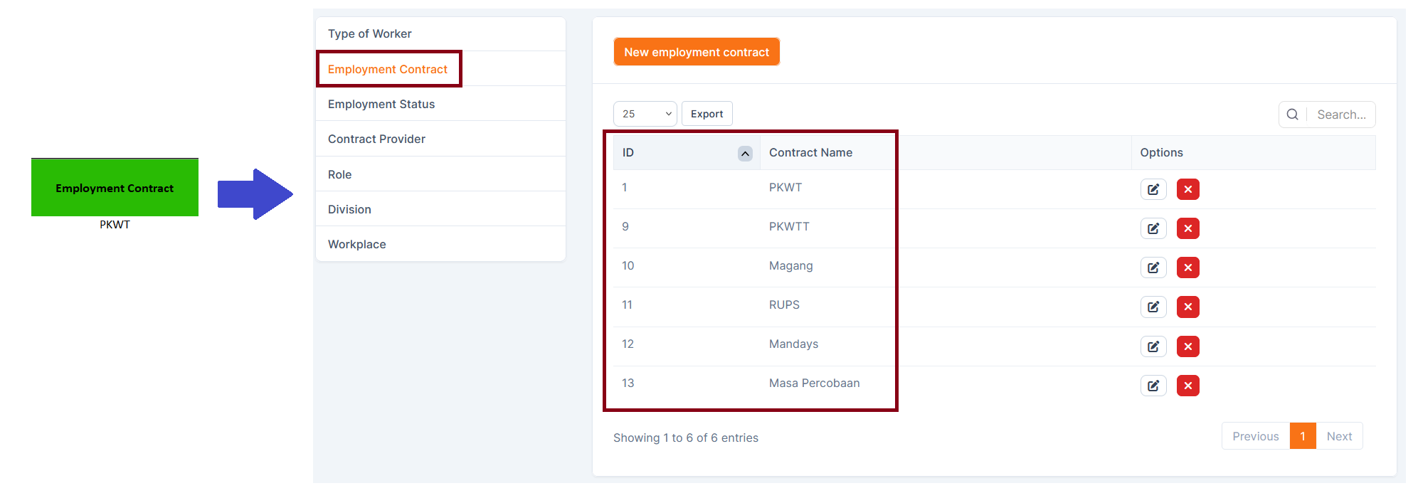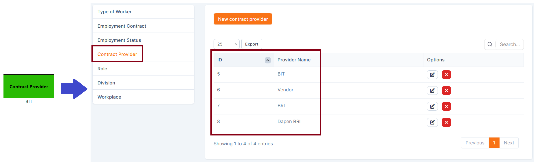 💡Referensi Pengisian: Buka HRM > Settings, lalu pilih Contract Provider.
