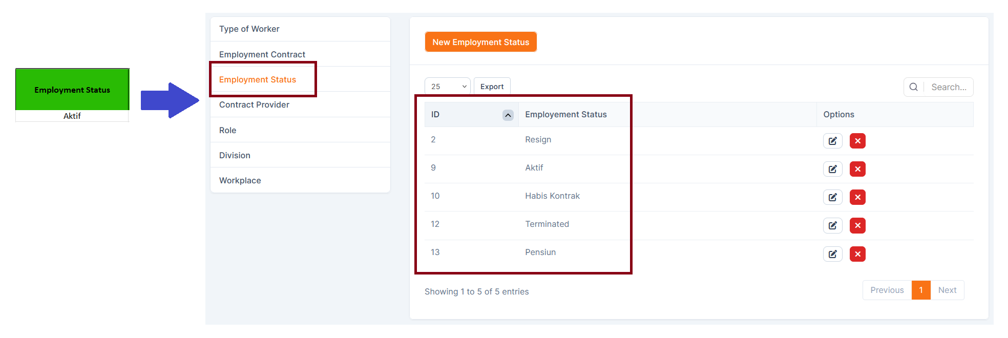 💡Referensi Pengisian: Buka HRM > Settings, lalu pilih Employement Status.