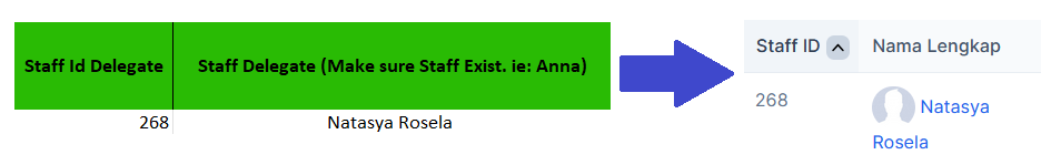 Staff Delegate = Nama Staff HC sesuai dengan Staff Id nya.