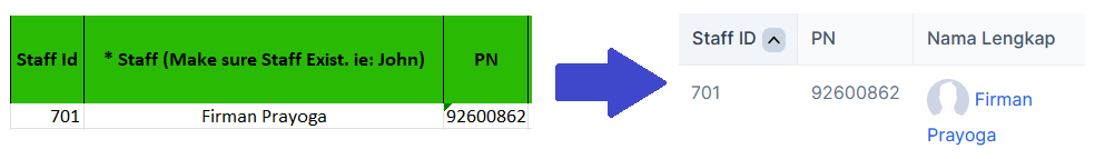 💡Referensi Pengisian: Buka HRM > Staff, lalu cari nama staff.