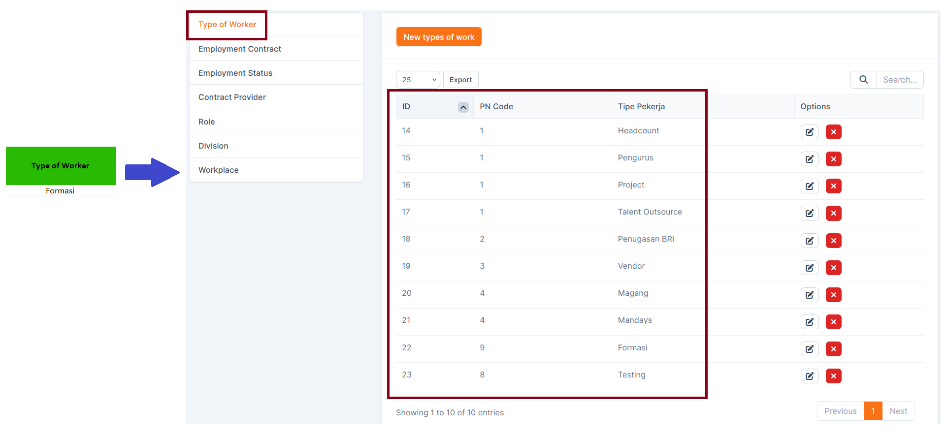 💡Referensi Pengisian: Buka HRM > Settings, lalu pilih Type of Worker.
