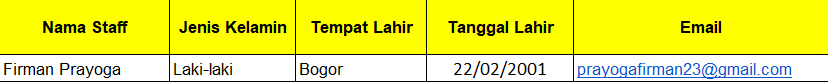 Jenis Kelamin = terdiri dari Lak-laki dan Perempuan