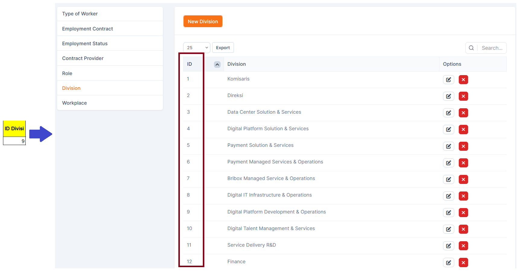 💡Referensi Pengisian: Buka HRM > Settings, lalu pilih Division.
