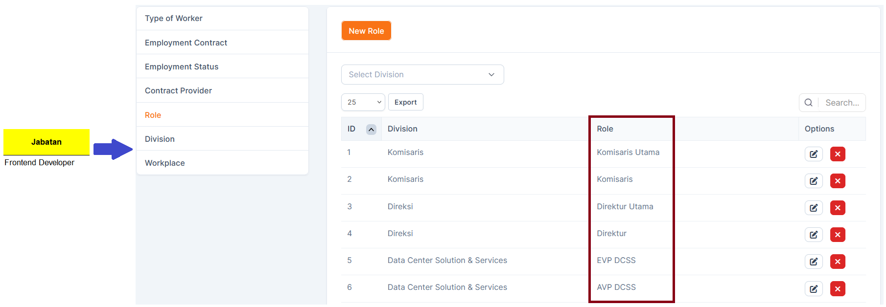 💡Referensi Pengisian: Buka HRM > Settings, lalu pilih Role.
