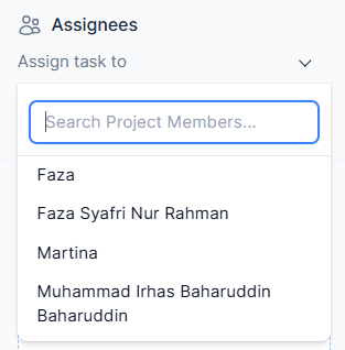 📝Catatan: Untuk menambah Assignee, klik tombol Assign task to pada bagian Assigne