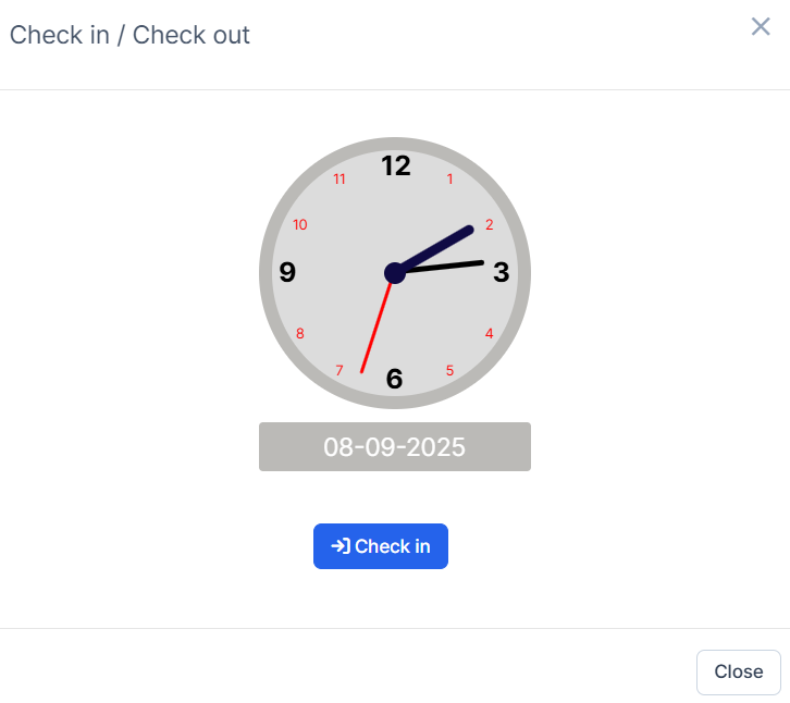 Waktu kerja telah dimulai, tercatat di Check In at.