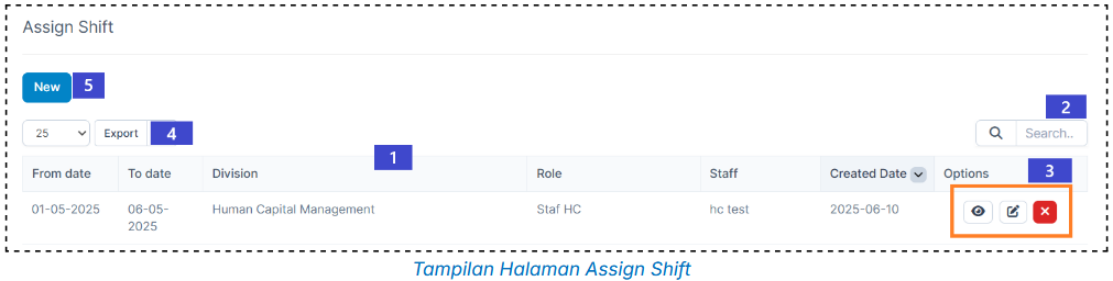 📝Catatan: Assign Shift dibuat oleh Admin masing-masing divisi. |