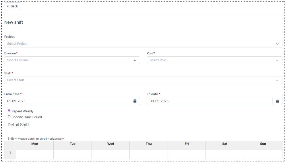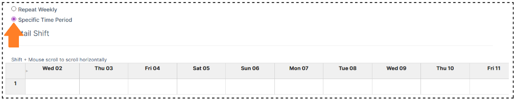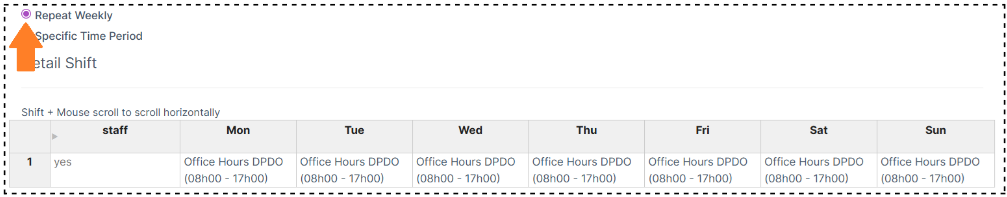 Pilih Repeat Weekly untuk membuat shift perminggu