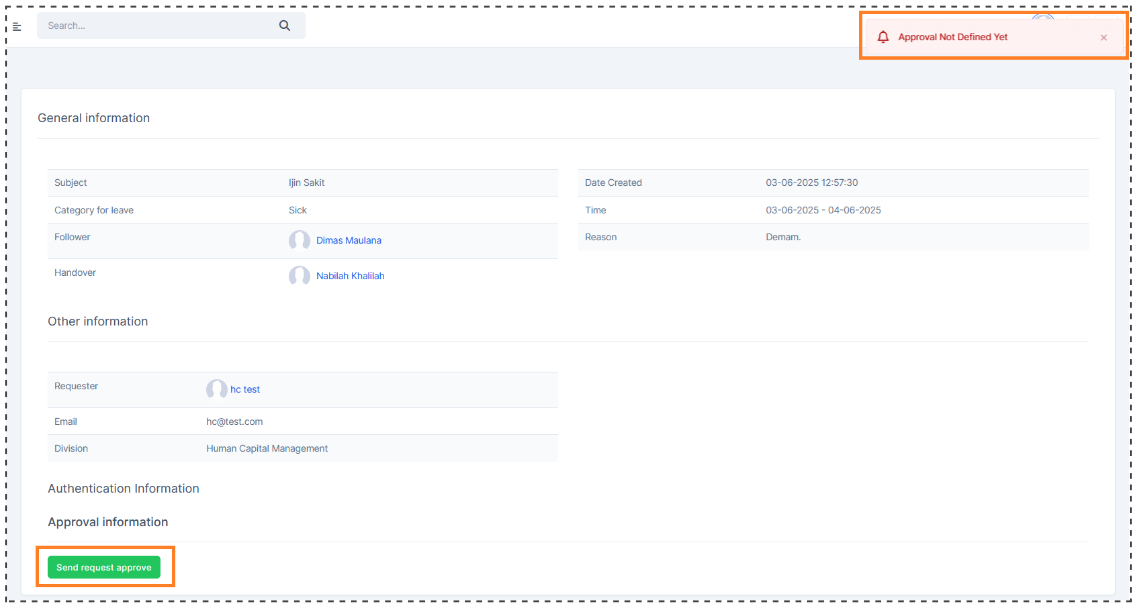 Silakan tunggu pengajuan cuti Anda di approve oleh Approver.