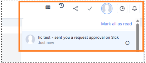 Buka Notifikasi yang berada di pojok kanan atas, lalu buka notifikasi [nama karyawan] - sent you a request approval on [tipe cuti]