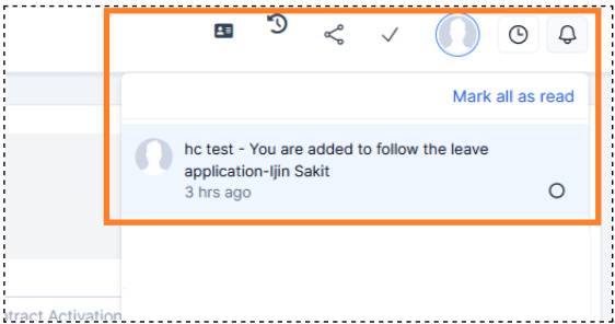 Buka Notifikasi yang berada di pojok kanan atas, lalu buka notifikasi [nama staff] - Your are added to follow the leave application - [subjek cuti]