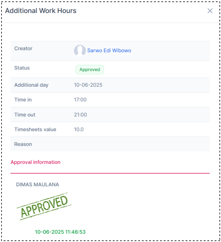 Berikut adalah contoh lembur yang sudah ditindaklanjuti: